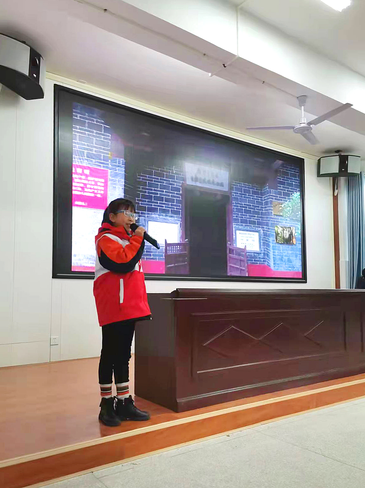 “红领巾志愿讲解员”卢果为同学们带来《水口连队建党》的故事,卢果是芙蓉小学的一名学生,也是红军标语博物馆的一名“红领巾志愿讲解员”。她表示:“我要把炎陵的红色故事讲给大家听,让红色精神永远传承下去。”