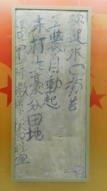 1928年-1932年间红军一师教导队四组书写的“欢迎水口劳苦工农自动起来打土豪分田地”标语